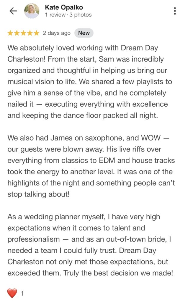 DJ Sam is the owner and operator of DREAM DAY Charleston, a DJ and events company in Charleston, South Carolina.